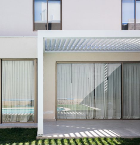 La pérgola bioclimática Spatio es una solución moderna para optimizar espacios exteriores durante todo el año. Fabricada en aluminio electro pintado, cuenta con lamas motorizadas que regulan la entrada de luz y la ventilación, brindando confort en distintas condiciones climáticas.