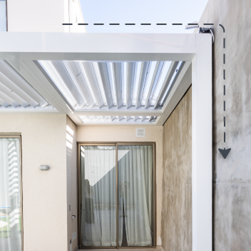 Su diseño incorpora un sistema de canalización y drenaje interno a través de los pilares, asegurando una eficiente evacuación del agua. Disponible en medidas predeterminadas o dimensionable a medida, se adapta a distintos espacios. Ofrece opción de instalación profesional o autoinstalación guiada, y puede complementarse con sensor de lluvia para mayor funcionalidad y protección.